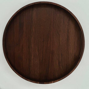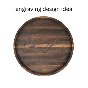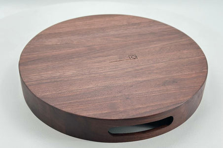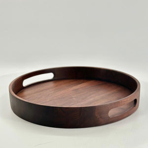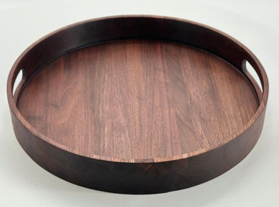 As the Little sister to our 15 inch tray, this one is just as beautiful and functional! Expertly crafted from a 2" thick walnut slab, this 12.5" diameter tray boasts a sleek and sturdy design perfect for entertaining or large fruit or veggie tray. The hollowed out interior allows for easy serving, while the 1 3/4" height provides ample room for any desired contents. Perfect for adding a touch of elegance to any table setting, coffee table, or foyer.