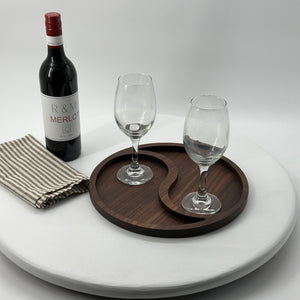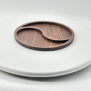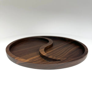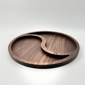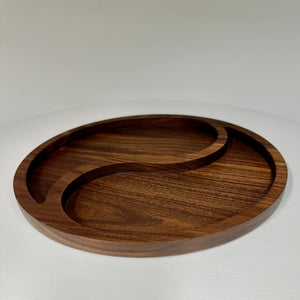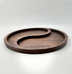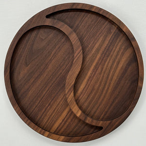 In the spirit of Yin Yang, symbolism, we introduce one of our very latest creations; a walnut hardwood charcuterie board that brings balance and symmetry to all your dining, entertaining, and decorating needs. While the perfect accent piece for a coffee table or dining room table, it's so much more than just a decor piece. This beautiful tray was meticulously hand crafted in house by STL's master-craftsman "Ron the resident builder", from sustainable and locally sourced walnut, and then sealed with a food safe mineral oil and finally, conditioned with Square Tree Lane's own board conditioner BeeNew™. Everything is natural making it safe for you and your family to enjoy. That means it's ready to go to work as soon as it arrives and all you need to do is enjoy it's beauty.