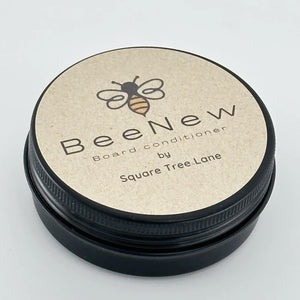 • Our boards go through a two stage sealing process with food safe mineral oil and then a blend of food safe mineral oil & beeswax (our very own brand of conditioner we make at Square Tree Lane . Each board comes with a BeeNew™; Square Tree Lane's own special blend of board conditioner. To learn more, check out our BeeNew™ information page. You can purchase BeeNew here.