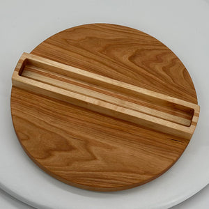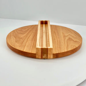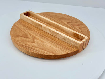The Cracker Keeper Charcuterie Board is an ingeniously designed hardwood board that solves the age-old problem of crackers sliding across your spread. Featuring a clever center trough, it keeps crackers perfectly compartmentalized and stable—ideal for olives and other rolling items too. Crafted from beautiful cherry and maple hardwoods in random widths, it is truly unique piece. Measuring 14 inches in diameter with a total height of 1.75 inches, this original Square Tree Lane design has become a customer favorite for anyone who appreciates both function and artistry in their entertaining essentials.